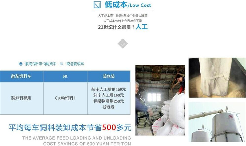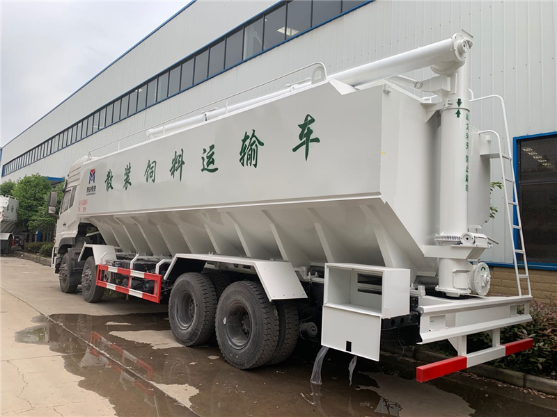 散裝飼料車的優(yōu)勢: 散裝飼料的生產(chǎn)可實現(xiàn)直接生產(chǎn)直接裝車,隨產(chǎn)隨出,不需要進(jìn)行提前備貨,不占用倉儲設(shè)施,也不會出現(xiàn)停產(chǎn)等待拉料的現(xiàn)象,使飼料生產(chǎn)實現(xiàn)計劃管理,生產(chǎn)效率得到提升。 ★獨有倒梯形設(shè)計,散裝飼料在罐體內(nèi)密封輸送,V字形罐體卸料順暢,減少飼料的耗損,保證質(zhì)量,避免污染。 ★運(yùn)輸比包裝成袋運(yùn)輸不但節(jié)省勞動力,而且成本較低。 ★可選電動卸料、全液壓卸料、氣卸為全自動上料卸料,可連續(xù)作業(yè),大大提高生產(chǎn)效率。 ★罐體內(nèi)可加裝分倉,可同時運(yùn)輸多種不同類的飼料或膨人介質(zhì)。部件標(biāo)準(zhǔn)化,容易維修保養(yǎng)。 頂部進(jìn)料倉